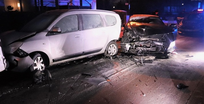 Während seiner Flucht verlor er wegen der erhöhten Geschwindigkeit und dem wetterbedingten glatten Boden immer wieder die Kontrolle über sein Auto. Auf der Bachstraße kollidierte er in Höhe der Haunummer 93 im Kurvenbereich mit einem geparkten Fahrzeug. Durch den Zusammenstoß wurden vier weitere Autos ineinander geschoben.