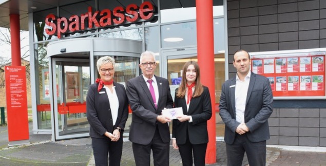 Um der jungen Auszubildenden seinen Dank auszurichten, besuchte Landrat Thomas Hendele in seiner Funktion als Leiter der Kreispolizeibehörde Mettmann am Montag (20. November 2023) die Richrather Filiale der Sparkasse Langenfeld. Vor Ort übergab er der Langenfelderin nicht nur unter dem Motto „Dank an die Bank“ ein offizielles Dankschreiben der Kreispolizeibehörde Mettmann, sondern auch einen Einkaufsgutschein in Höhe von 50 Euro für den lokalen Einzelhandel.