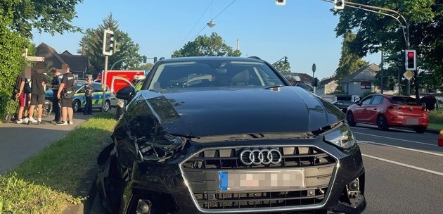 Am Samstagabend, 27. Mai 2023, gegen 19.50 Uhr verursachte ein 44-jähriger Kölner mit seinem Audi A4 Avant einen Frontalzusammenstoß im Kreuzungsbereich Knipprather Straße/Düsseldorfer Straße.