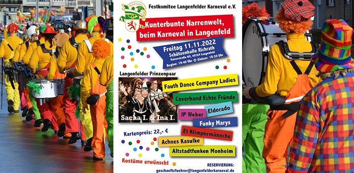 „Kunterbunte Narrenwelt, beim Karneval in Langenfeld “ Dieses Jahr geht wieder was und so steht das Festkomitee Langenfelder Karneval e. V. für die Session