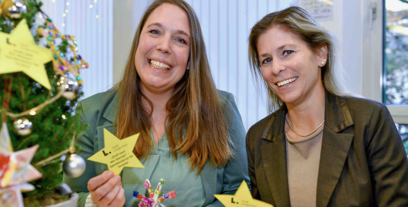 BU: Sonja Wienecke (rechts) und Kathrin Schwanke aus dem Referat Jugend, Schule und Sport wünschen sich viele Senderinnen und Spender, die „nach den Sternen greifen“ und die Langenfelder Vereinswelt unterstützen.