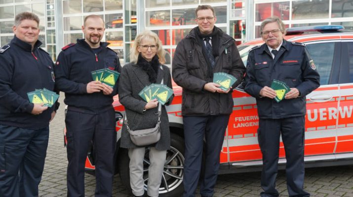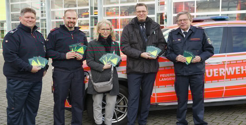 lien in Langenfeld damit ausstatten.“ Begrüßt wurden die Gäste dabei auch vom stellvertretenden Leiter der Feuerwehr Langenfeld, Torsten Maslow, der ihnen seinen Dank für diese Spende im Sinne der Sicherheit für die Kleinsten in unserer Stadt aussprach.