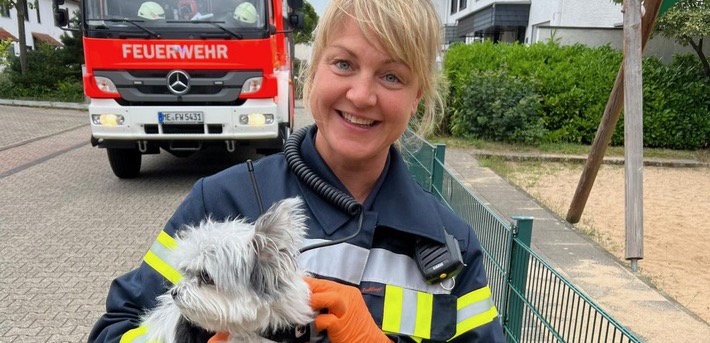 Ein nicht ganz alltäglicher Einsatz, zu dem Feuerwehr und Rettungsdienst gestern (31. Juli 2023) am frühen Nachmittag ausgerückt sind. Sie erreichte gegen 14.09 Uhr ein Notruf von einer Frau, die beim Gassigehen am Galkhausener Bach gestürzt war und sich schwer verletzt hatte. Die 60-Jährige konnte den Einsatzkräften ihre Position mitteilen. Ein Rettungswagen und ein Löschfahrzeug rückten zur Einsatzstelle aus, da sich der Unfallort auf unwegsamem Geländes befand. Dort wurde dann nicht nur die Patientin rettungsdienstlich versorgt auf einer speziellen Rettungstrage durch das schwere Terrain zum Rettungswagen gebracht, sondern auch ihr Hund Lilli wurde vor Ort solange betreut, bis die Tochter der Verletzten vor Ort eingetroffen ist und den Hund übernahm. Die 60-jährige Frau war in der Zwischenzeit in ein Krankenhaus gebracht worden. Acht Einsatzkräfte waren als Helferinnen und Helfer für den gut einstündigen Einsatz vor Ort.