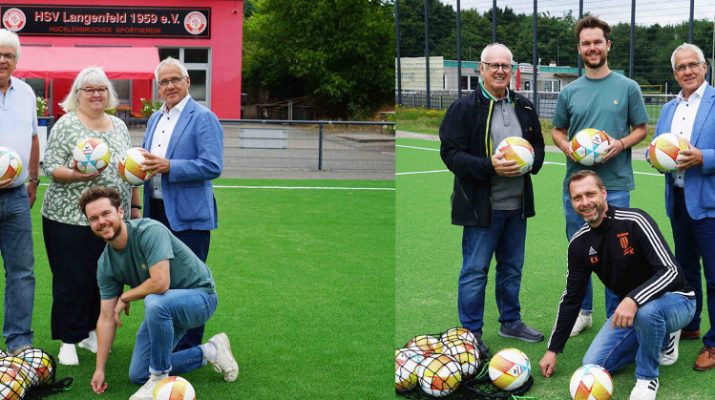 Die beiden Nutzervereine SSV Berghausen und HSV Langenfeld freuen sich über das jeweils neue Geläuf auf den Anlagen und können es kaum erwarten, in den Trainings- und Spielbetrieb einzusteigen. Gunnar Neuser, Vorsitzender des HSV Langenfeld und Kevin Keip, Vorsitzender des SSV Berghausen, dankten der städtischen Delegation, die es sich am Dienstag nicht nehmen ließ, die beiden neuen Spielflächen vor Ort in Augenschein zu nehmen. Dabei kamen sie nicht mit leeren Händen. Bürgermeister Frank Schneider übergab den Vereinen zusätzlich neue Fußbälle für die Jugend, um das erste Spielerlebnis auf den neuen Belägen noch mehr genießen zu können.