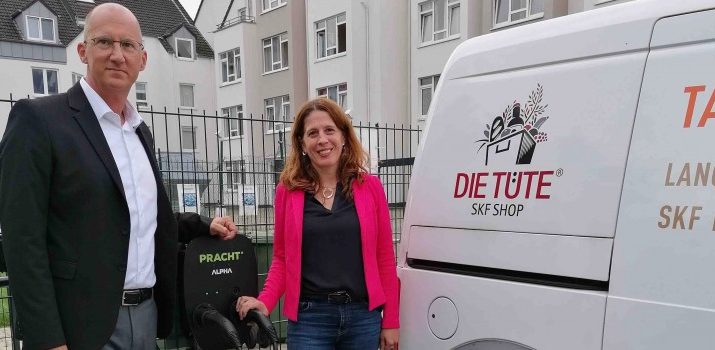 Die Tüte®, wie die Langenfelder Tafel heißt, hat erst vor wenigen Wochen ein neues E-Auto in Empfang nehmen können. Jetzt gibt es auch eine Wallbox, dank der Stadtwerke Langenfeld, die die Kosten dafür übernommen hat, worüber sich nicht nur die Geschäftsführerin des SkF Langenfeld Stephanie Krone freut: „Der Einstieg in die nachhaltigere E-Mobilität ist gerade für gemeinnützige Organisationen zwar kostenintensiv, spart aber nachhaltig Betriebskosten bei der Tafel Langenfeld Die Tüte®. Wir sind dankbar, dass uns die Stadtwerke bei dieser Investition unterstützen, damit wir auch auf diesem Wege zum Klimaschutz beitragen können sowie langfristig Betriebskosten einsparen können.“