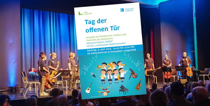 Die Musikschule Langenfeld lädt am Sonntag, 9. Juni 2024, zum „Tag der offenen Tür“ ein. Um 11 Uhr geht es los: Im großen Saal des Schauplatzes gibt es das Matinee-Konzert „Wir haben Töne“. Neben der Musikschule präsentieren sich außerdem der Langenfelder Kinder- und Jugendchor sowie das Concerto Langenfeld. Karten für das Konzert sind im Vorverkauf über die Homepage des Schauplatzes erhältlich.