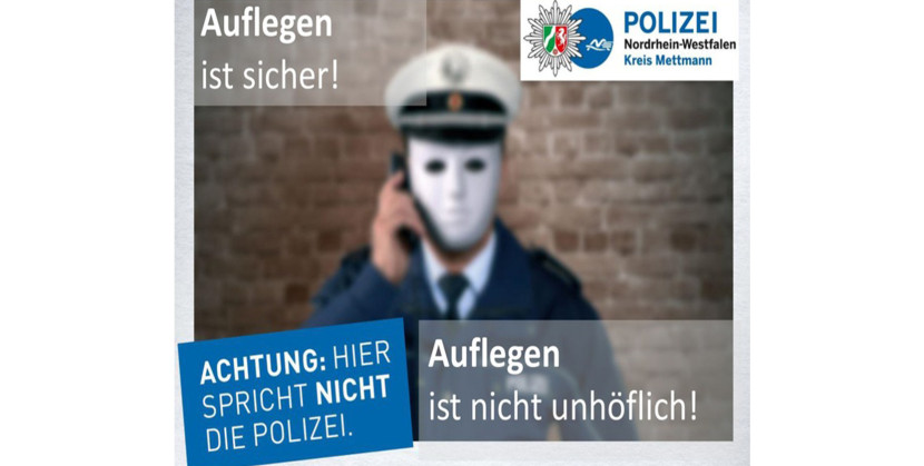 Wenn Sie so einen Anruf erhalten, legen Sie einfach auf! Rufen Sie die echte Polizei in einem eigenständigen Telefonat von Ihrem Festnetztelefon unter der 110 an!“