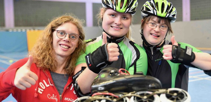 BU: Diese drei Langenfelderinnen gehen unter anderem bei den Special Olympics an den Start:  Hannah Radeke, Natalie Krosta und Stefanie Wiegel.