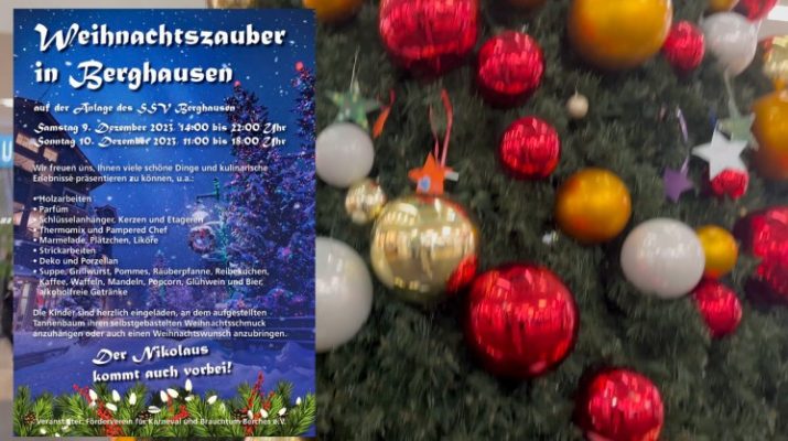 Unter der Organisation des Förderverein für Karneval und Brauchtum Berches e.V. findet am zweiten Adventswochenende (9. und 10. Dezember 2023) auf dem Vereinsgelände des SSV Berghausen, Baumberger Straße 60, der Weihnachtszauber Berches statt.